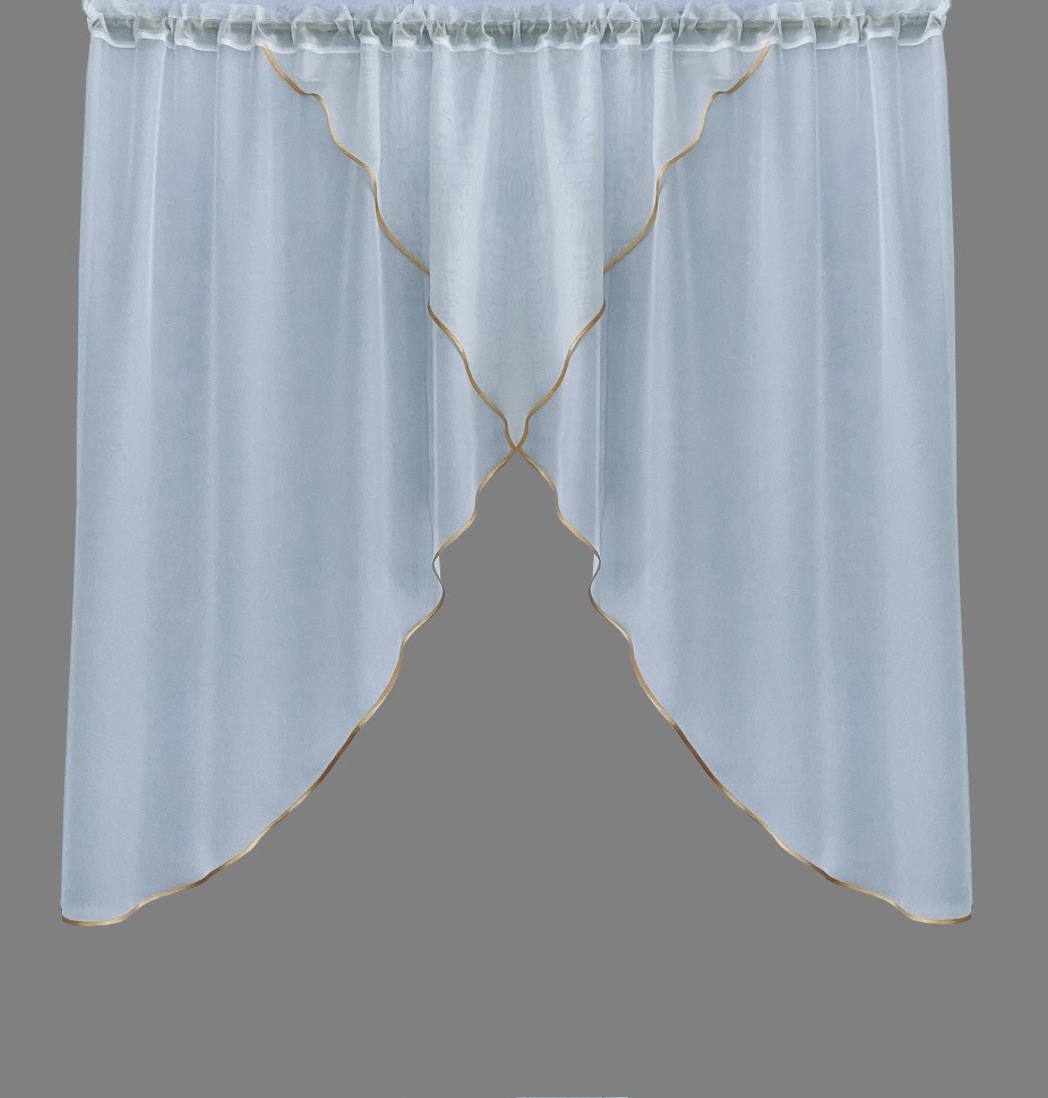 valge  vuaalkangas, kanditud  servadega, valgust läbilaskev kerge kangas, 100% polüester, 30° õrnpesu.