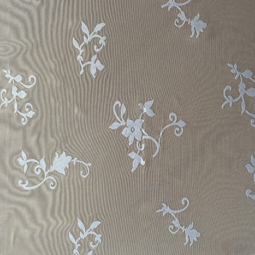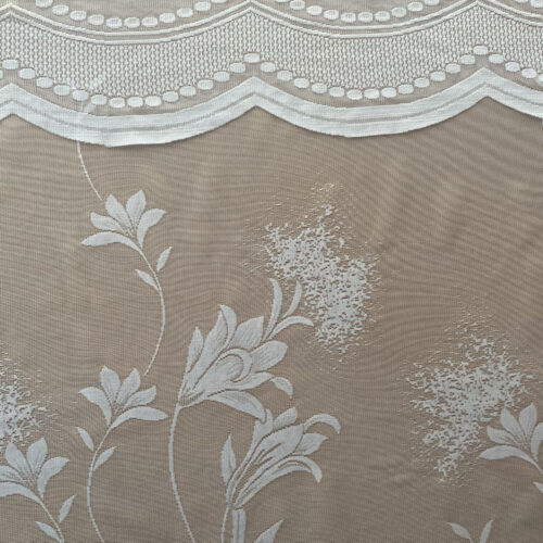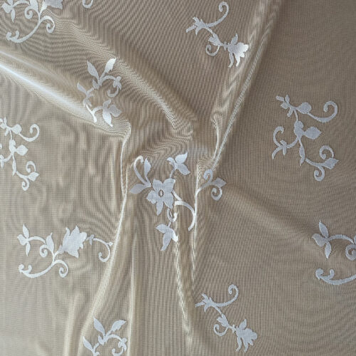 Valge lillelise mustriga pitskardina kangas: kõrgus 200cm